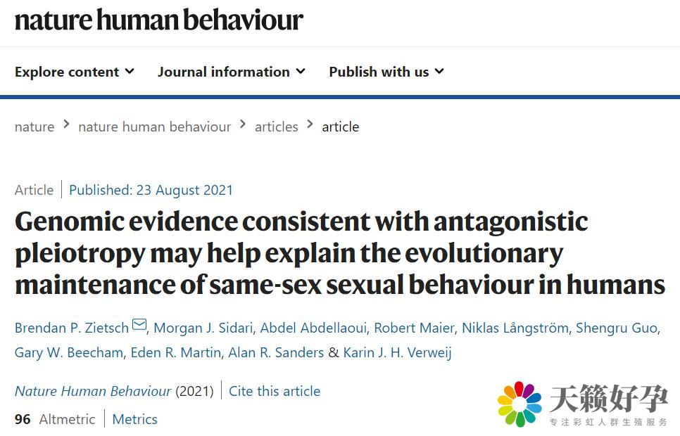 對此,Zietsch 教授解釋到,“擁有更多的伴侶是求偶成功的標誌,我們的研究結果或有助於解釋為什麽同性戀相關基因在人類進化的過程中持續存在。因為,擁有同性戀相關基因的異性戀人群,往往擁有更多的伴侶和後代,因而在進化中更受青睞。”