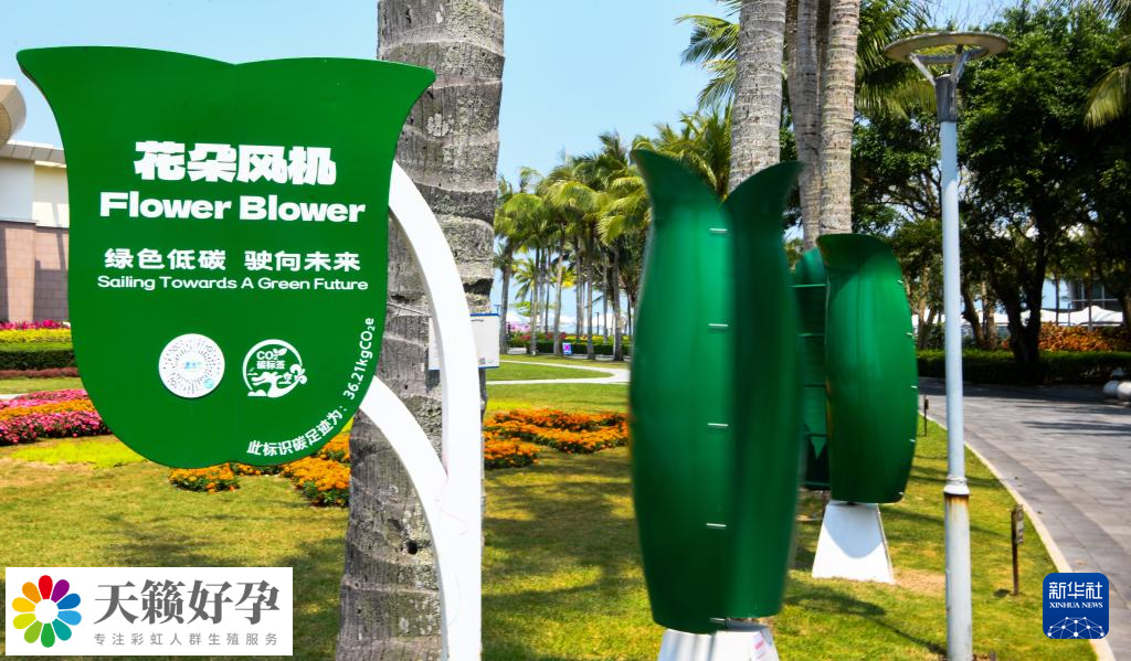 這是3月25日拍攝的博鼇零碳示範區內(nei) 的花朵風機。花朵風機用來收集風能,是島內(nei) 可再生能源利用項目之一。