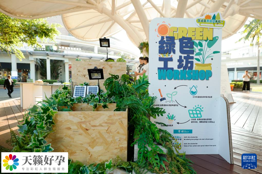 這是3月26日在博鼇亞(ya) 洲論壇2025年年會(hui) 會(hui) 場外的休息區拍攝的“綠色工坊”。