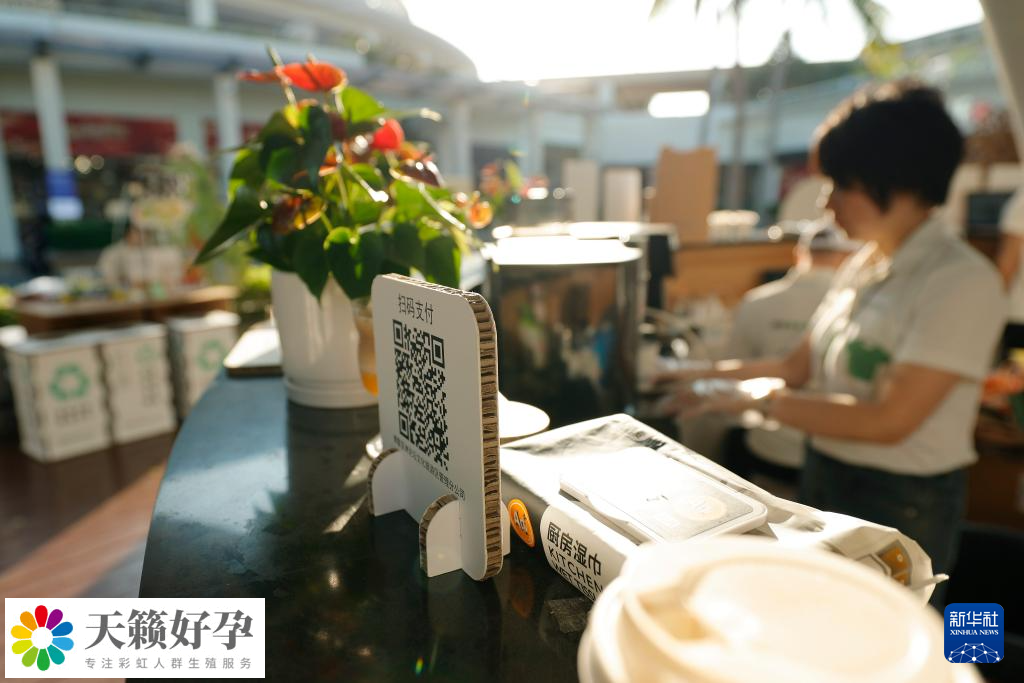 3月26日在博鼇亞(ya) 洲論壇2025年年會(hui) 會(hui) 場外的休息區拍攝的支付碼。支付碼印在可再生紙製作的紙板上。