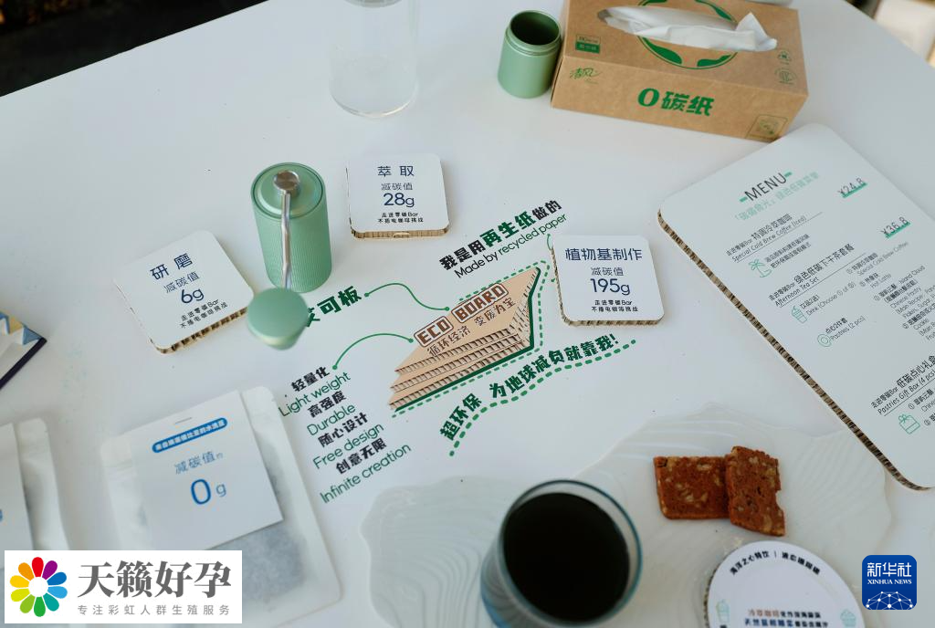 3月26日在博鼇亞(ya) 洲論壇2025年年會(hui) 會(hui) 場外的休息區拍攝的一個(ge) 桌麵上的“零碳”信息。