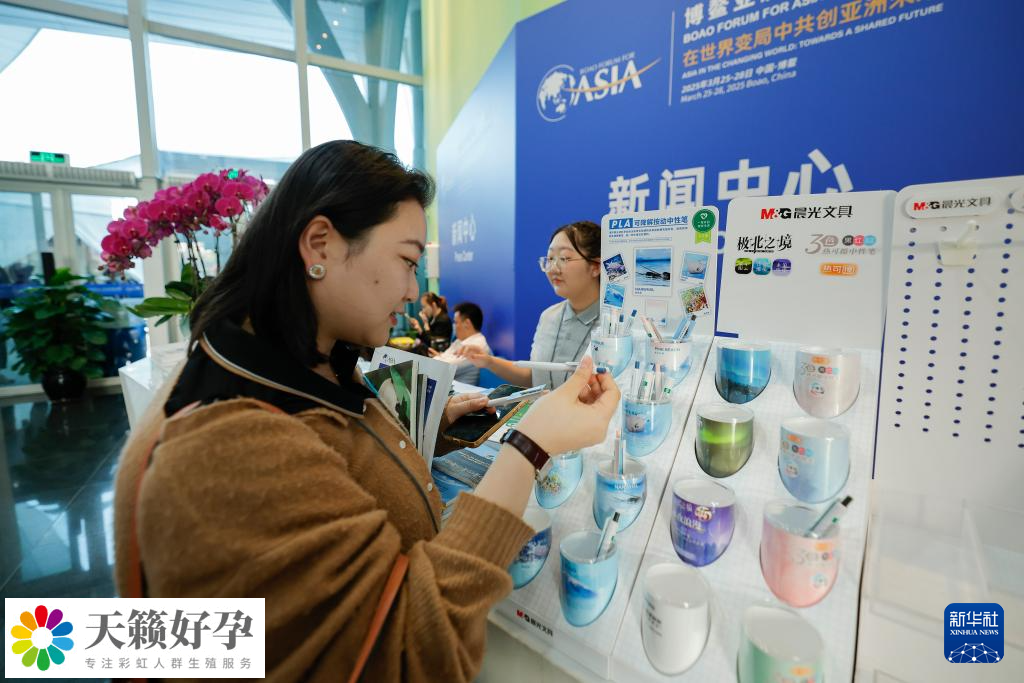 3月26日,在博鼇亞(ya) 洲論壇2025年年會(hui) raybet官网,一名媒體(ti) 工作者在領取可降解按動中性筆。
